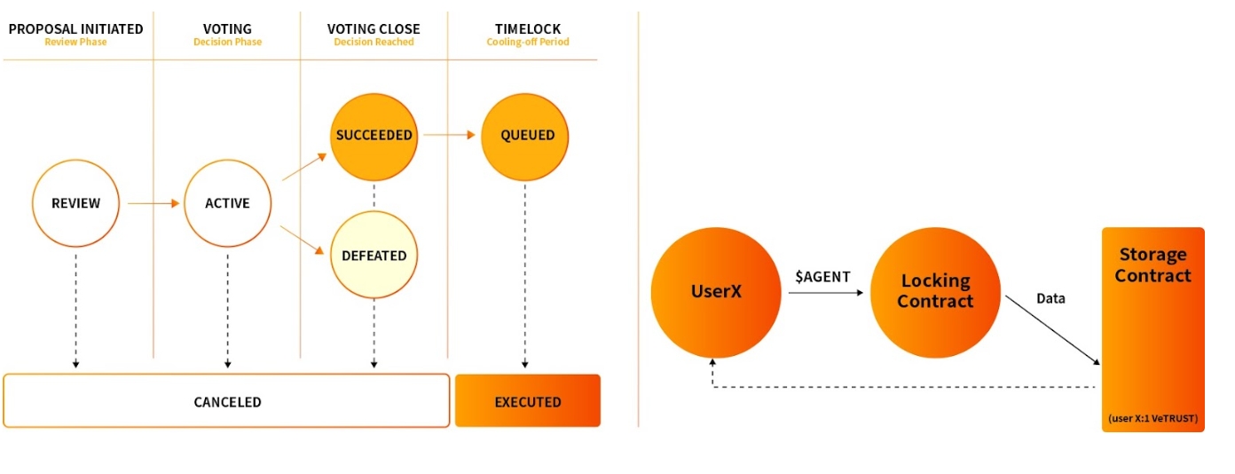 The AgentLayer brings in a special class of Community Watchdog Agents to ensure the community's transparency, safety and security. Additionally, the AgentLayer Goverance DAO (TAG DAO) has been established, allowing community members holding veAGENT governance tokens to participate in decision-making processes to foster transparent and decentralized collaboration and decision making.