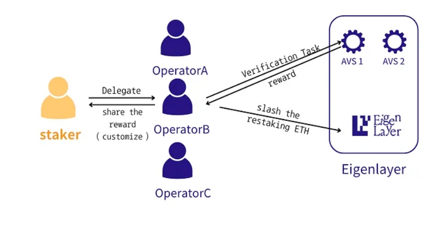 EigenLayer is a validation network that allows Ethereum stakers to reallocate their staked tokens to support various services. It enables users to repurpose their staked ETH to extend security to other decentralized applications (dApps) built on the Ethereum network. EigenLayer operates as a marketplace where developers incentivize validators to allocate their restaked ETH to secure different protocols, such as data availability layers, bridges, and oracle networks.